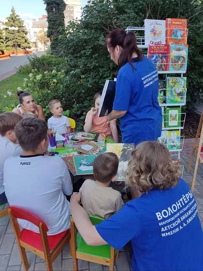 Волонтёры рассказали детям о том, как знаменитые художники-иллюстраторы оформляют книги, и помогли им нарисовать иллюстрации к любимым произведениям.